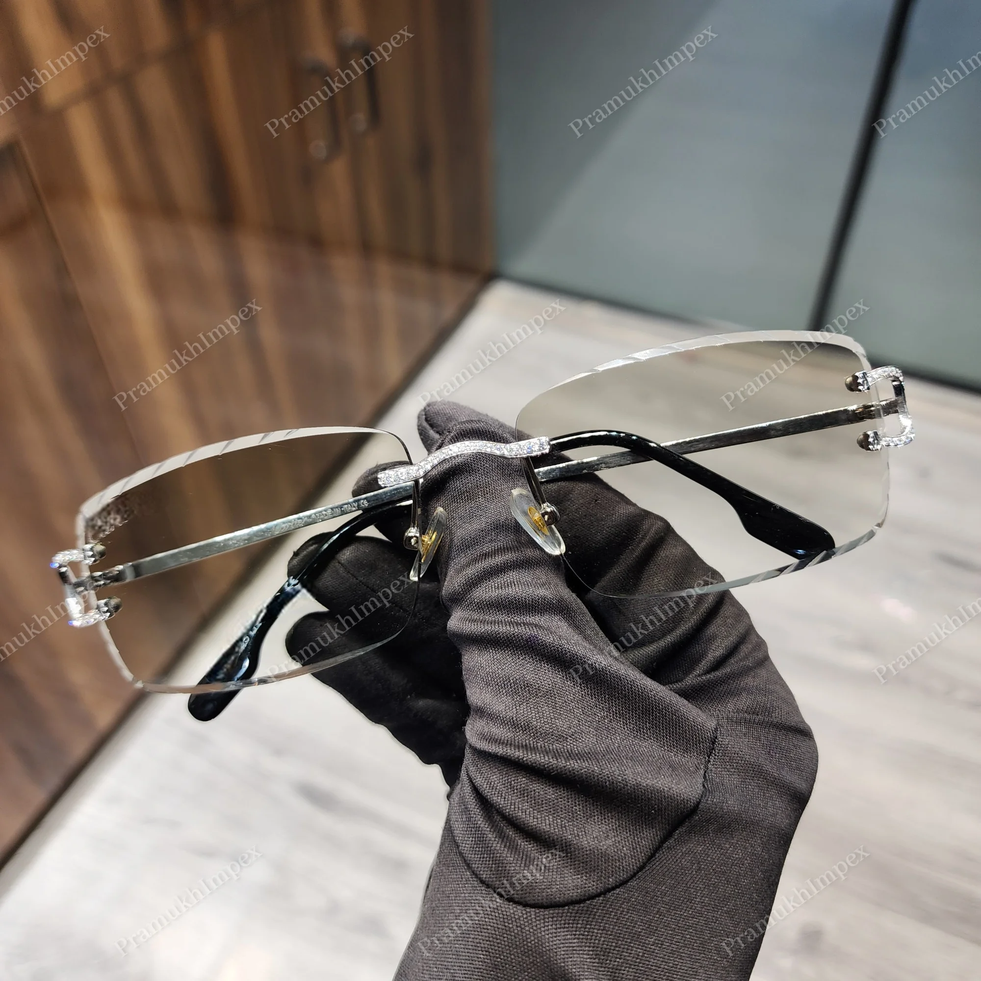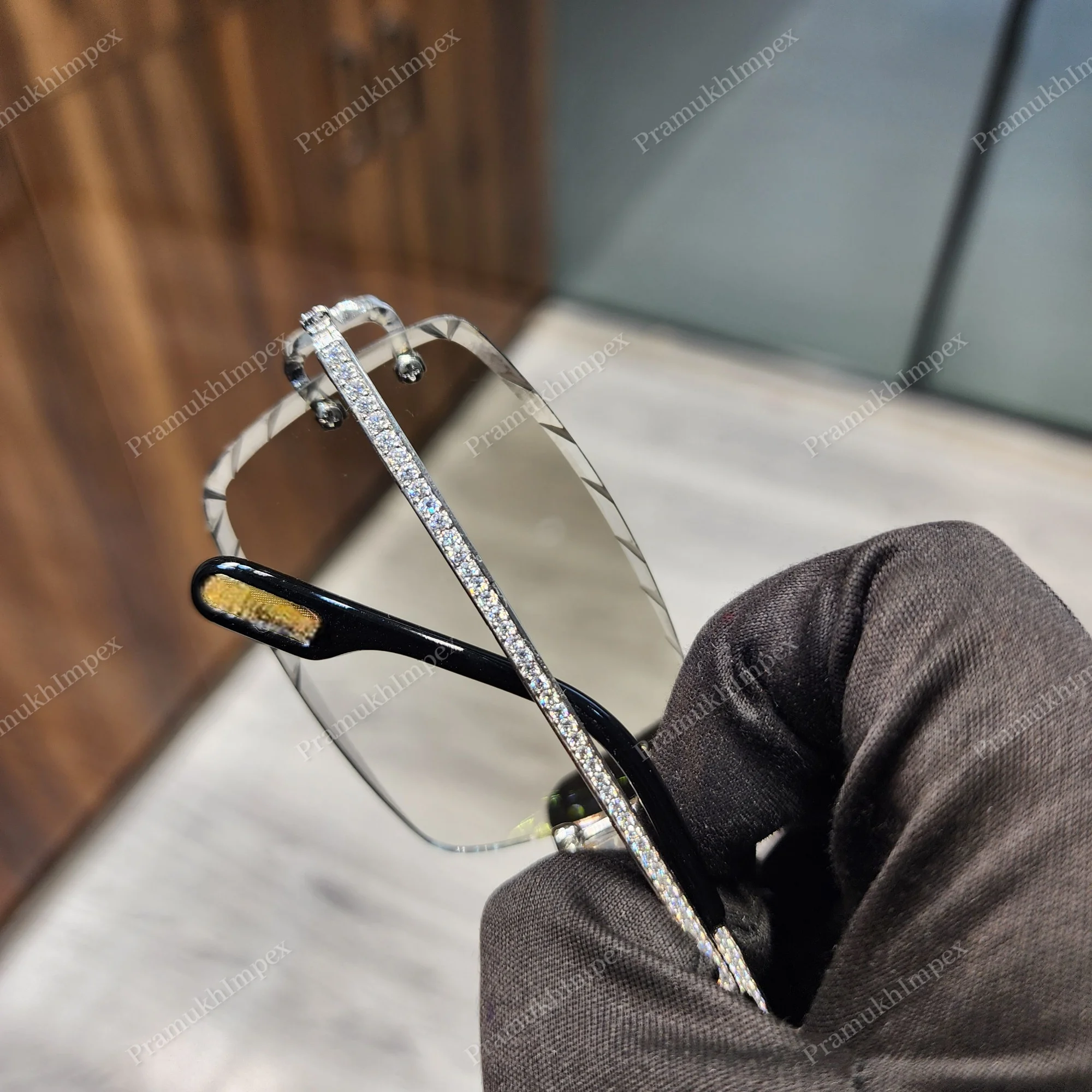 Customized Transparent Green Anti-Reflective Moissanite Diamond Fashionable Luxury Box Paper Hiphop Sunglasses for Men